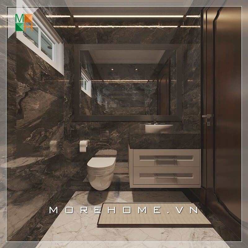 Một không gian phòng tắm nhà phố, biệt thự trang trí nội thất được sắp xếp khoa học hợp lí tiện lợi cho quá trình sử dụng mang lại thẩm mỹ và hiện đại.