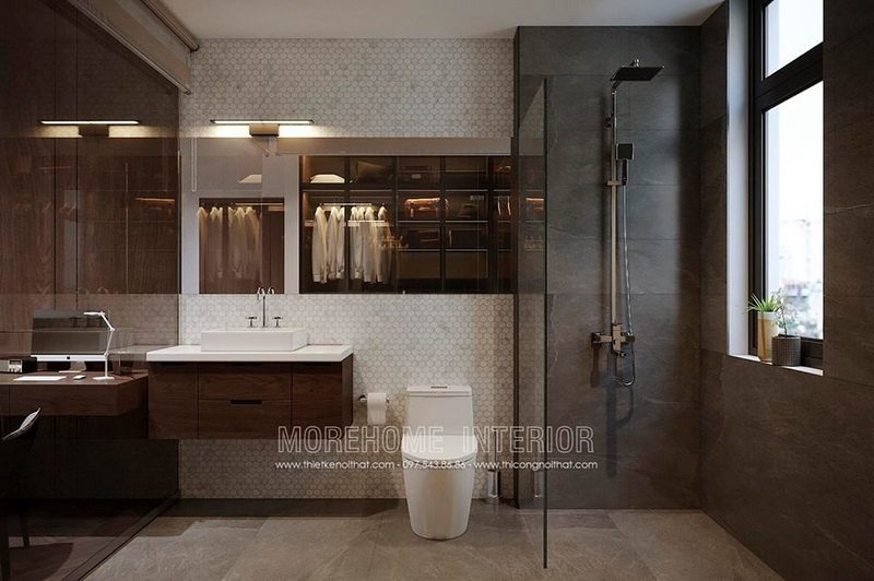 Phòng tắm và vệ sinh hiện đại dành cho chung cư cao cấp được thiết kế tối giản tiện lợi đầy ấn tượng.