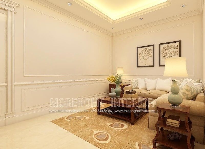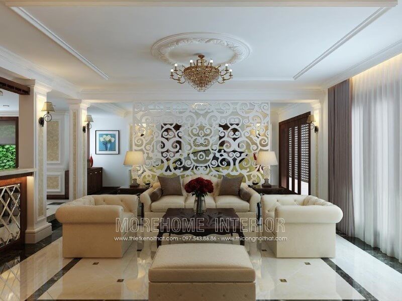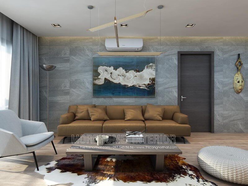 Bàn trà được đặt ở vị trí trung tâm của phòng khách giúp không gian thêm nổi bật và ấn tượng hơn.