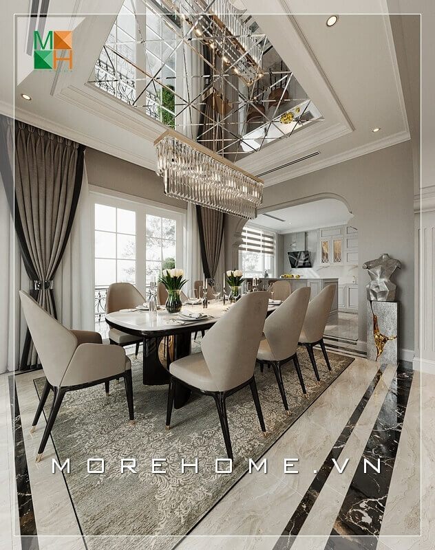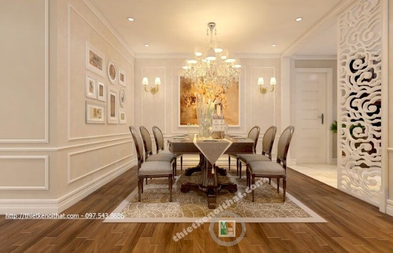 Thiết kế nội thất phòng ăn chung cư phong cách tân cổ điển