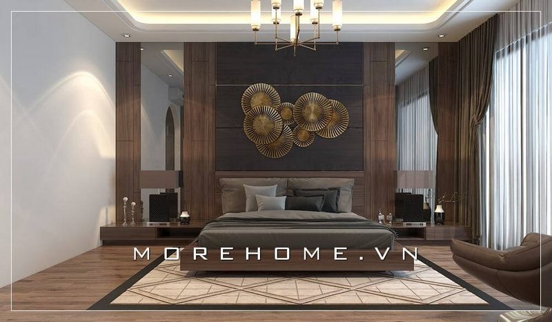 Nếu bạn sở hữu một căn phòng ngủ biệt thự có cửa sổ rộng bạn có thể lựa chọn những mẫu giường ngủ thấp với tông màu trầm để có không gian sang trọng và năng động hơn