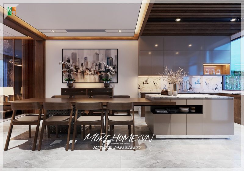 Tạo ra một không gian mở trong biệt thự, nhà phố để kết nối các thành viên trong gia đình, bằng cách thiết kế một phòng ăn gần cầu thang, để tạo ra một cảm giác ấm áp và yêu thương.