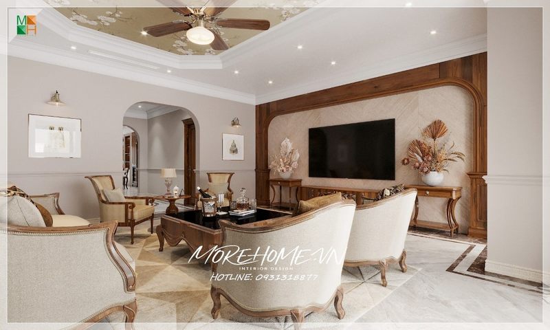 Việc thi công kệ tủ gỗ óc chó tân cổ điển sang trọng, cung cấp cho không gian sống tiện nghi và thẩm mỹ cao.