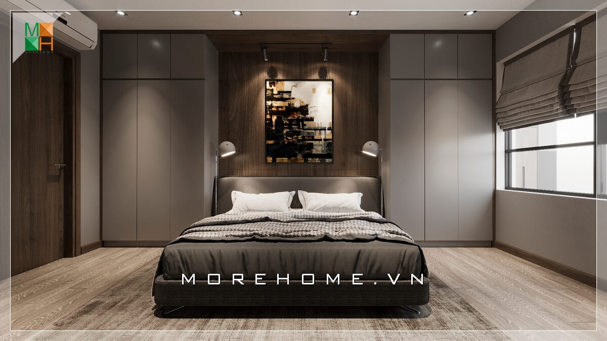 Tủ quần áo gỗ công nghiệp màu nâu trầm gợi cảm giác ấm cúng mà không kém phần sinh động
